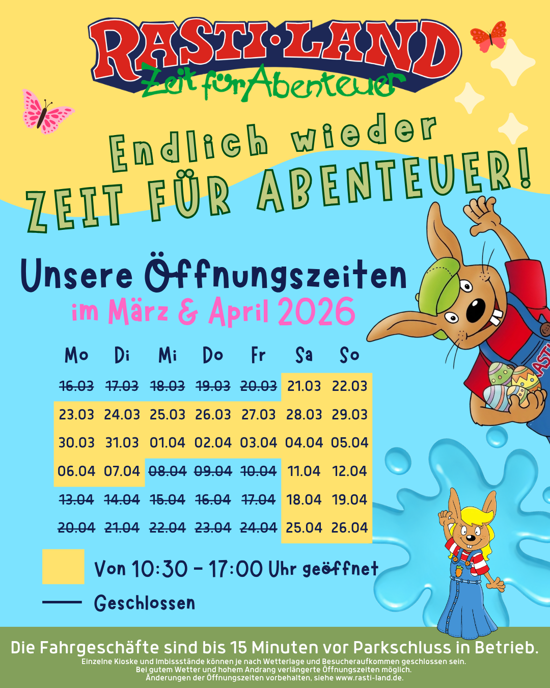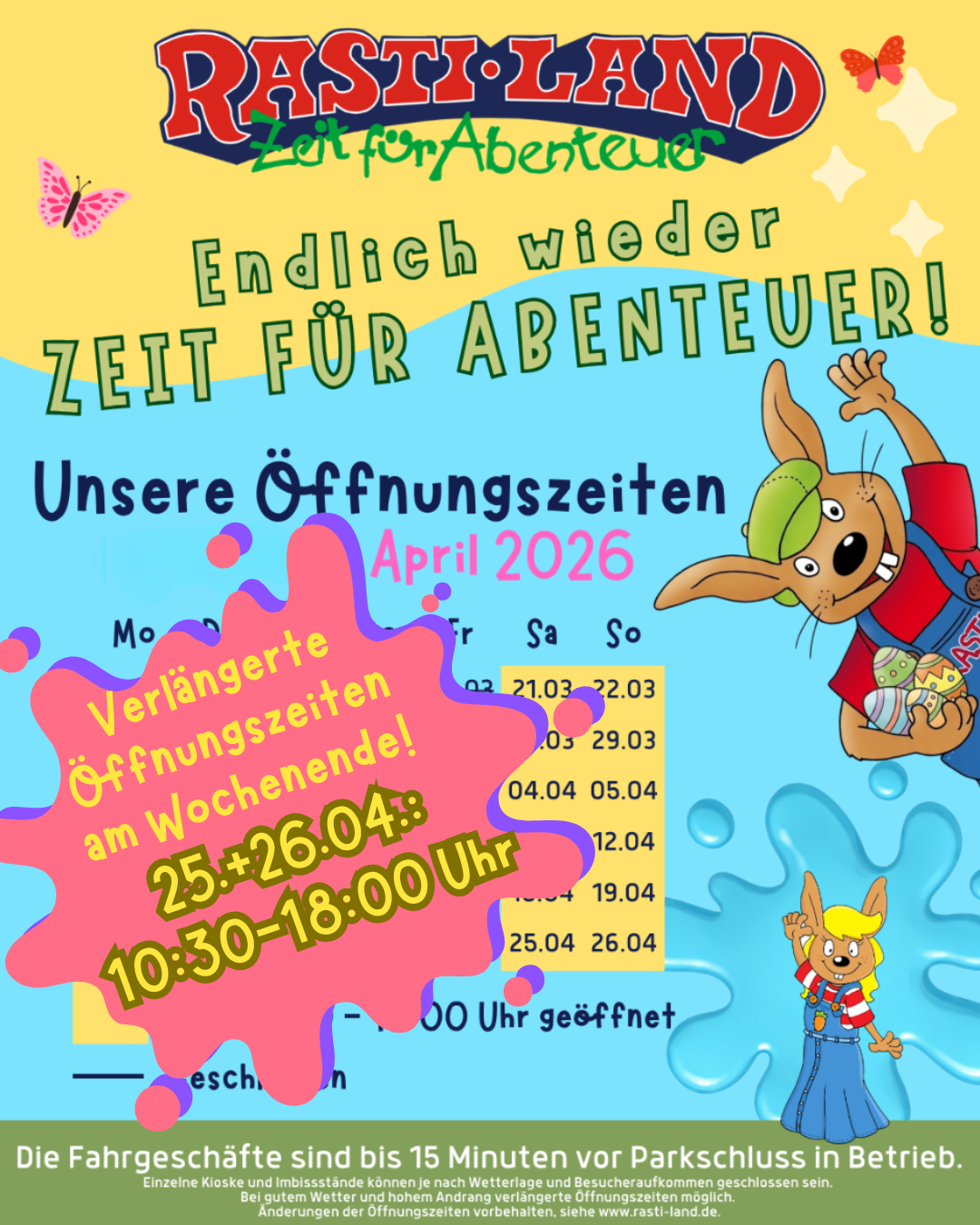 Hunde sind bei uns im Rasti-Land herzlich willkommen – natürlich an der Leine! 😊 Euer Vierbeiner darf sogar kostenlos mitkommen, und wir zählen darauf, dass ihr den Park unaufgefordert von tierischen Hinterlassenschaften sauber haltet. Vielen Dank dafür! 🐾